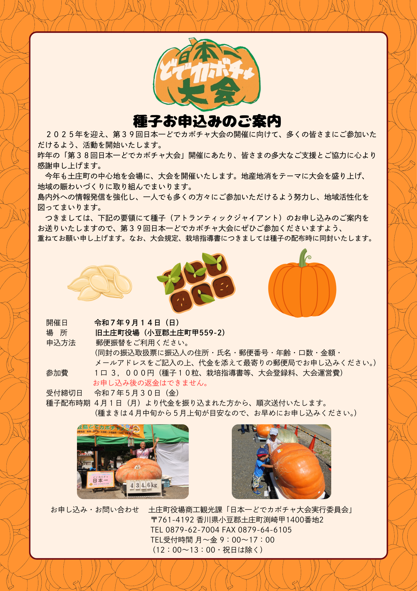 ■第39回日本一どでカボチャ大会種子申込のご案内について。